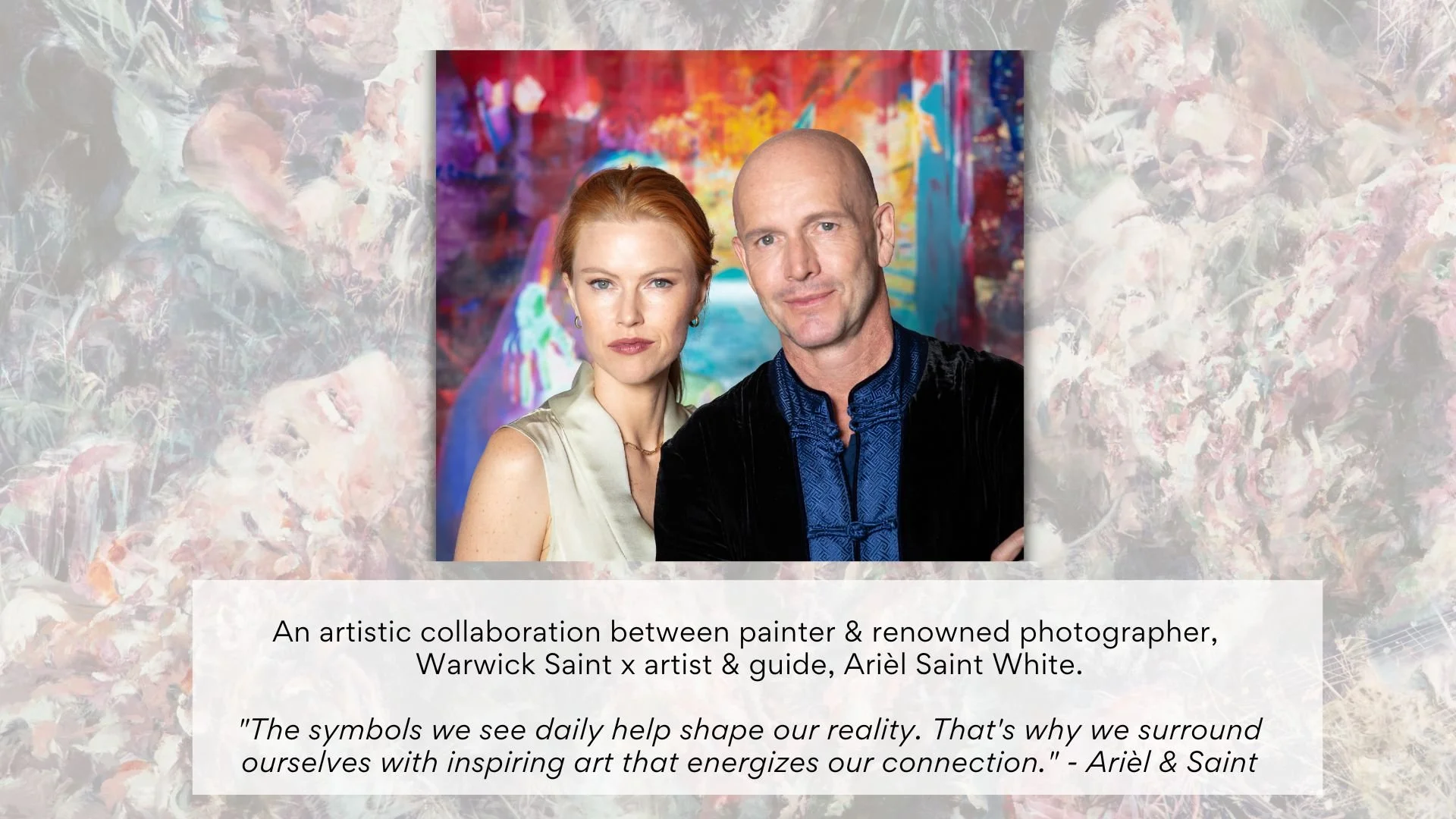 Love Saints is an ongoing, collaborative art series by Warwick Saint and Ariél Saint White. A private art process that transforms real love stories into evocative, one-of-a-kind, mixed media artworks. We provide couples with a once-in-a-lifetime experience, creating legacy artwork that inspires them & invigorates their connection.